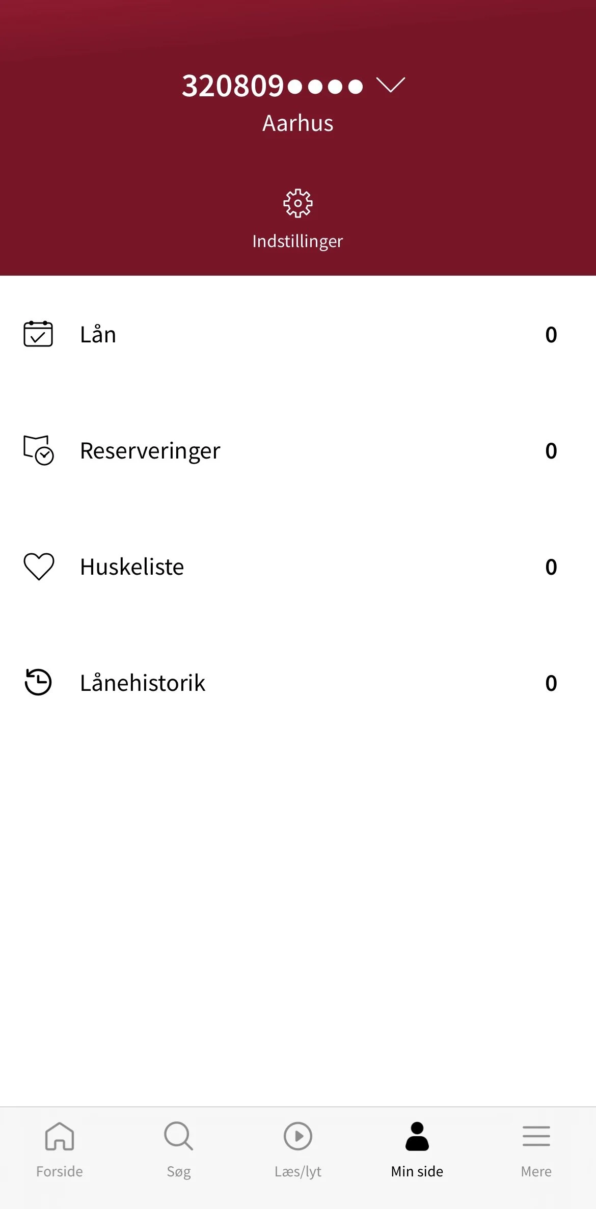 Log ud af appen ved at vælge “Min side” i bundmenuen. Tryk derefter på pilen ved siden af dit lånerkortnummer øverst, og vælg “Log ud”.