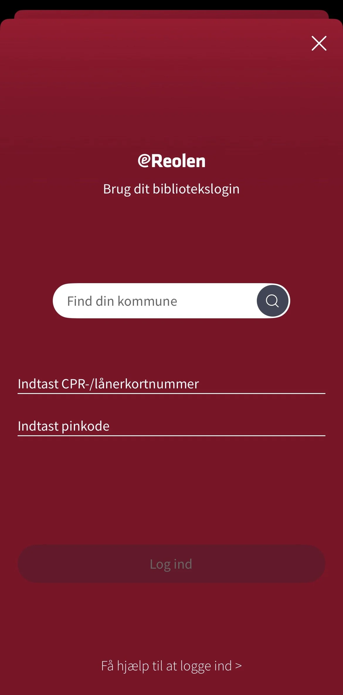Dine login-oplysninger til eReolens app er de samme, som du bruger på biblioteket i din kommune. Det består af et lånerkortnummer/CPR-nummer og en pinkode.